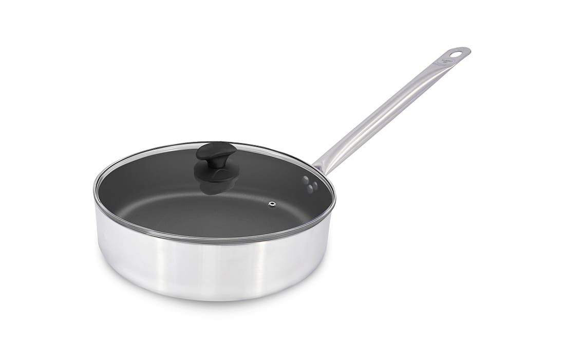 Frigideira Hotel Reta Antiaderente Cabo Inox Tampa de Vidro Alumínio ABC