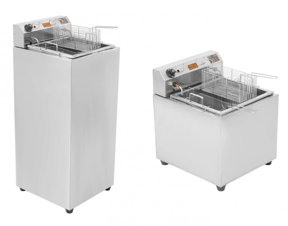 Fritador Água e Óleo IBET Fritador construído em aço inox escovado e cesto para fritura. Cabeçote composto por termostato (50°C a 200°C), lâmpada piloto e resistência 5.000W. Voltagem 220V.