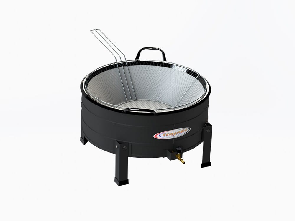 A linha de Fritadores à Gás Tacho é confeccionada em chapa aço carbono com pintura Epóxi ou em aço inox 430. Os fritadores possuem três tamanhos: 4 litros, 10 litros e 19 litros e são utilizados para frituras de modo geral, além de serem muito econômicos. O tacho que acompanha o produto é esmaltado e sua camada esmaltada age como barreira contra a proliferação de bactérias que podem contaminar os alimentos. Os fritadores estão disponíveis nos modelos com pés ou para mesa.
