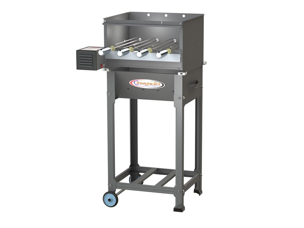 LINHA STANDARD – Corpo em chapa aço carbono com pintura époxi eletrostática cinza grafite com capa frontal dos espetos em aço inox.