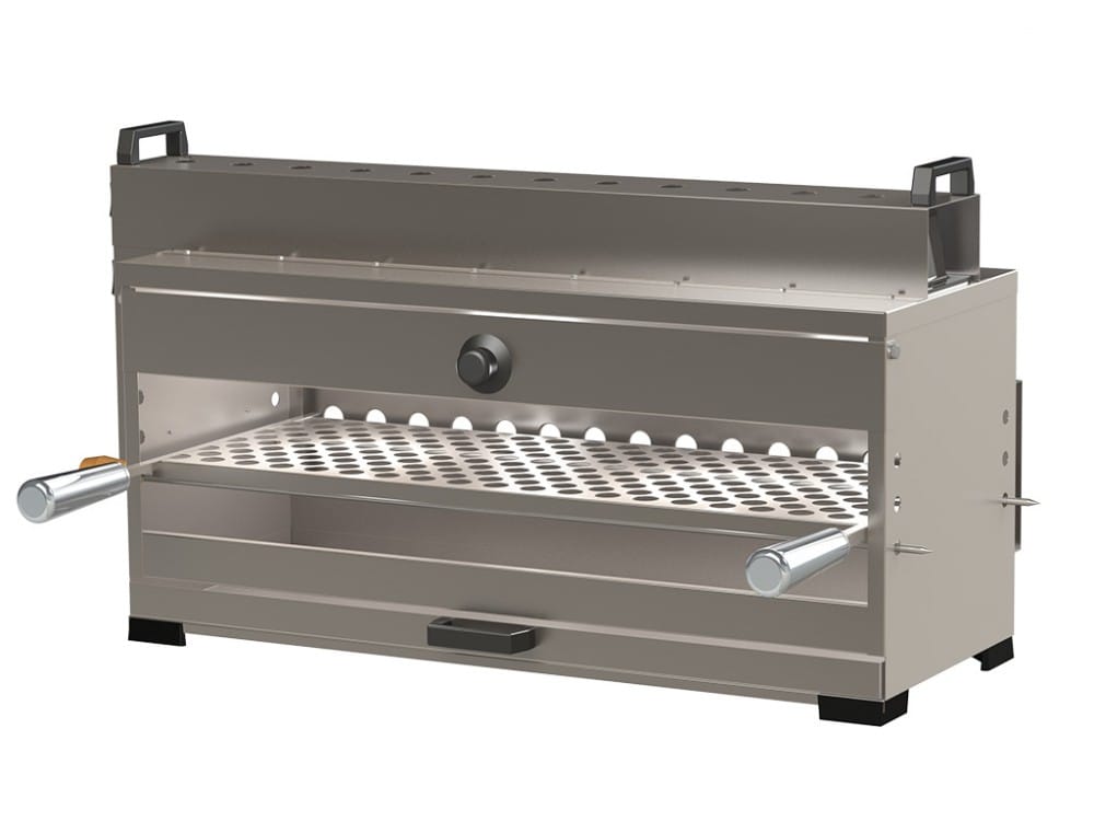 A linha de churrasqueiras Suprema é confeccionada em chapa aço inox 430. Esta churrasqueira possui opção de com motor que vem com lugar para 9 espetos rotativos e é opcional o uso da grelha e também a opção de sem motor, porém não há rotação dos espetos. A linha apresenta infravermelho superior que é utilizado para assar as carnes e bandeja coletora de resíduos. Produto bivolt. Não precisa do uso de carvão. Este produto é ideal para apartamentos e uso doméstico, não emite gases tóxicos e é muito prático.