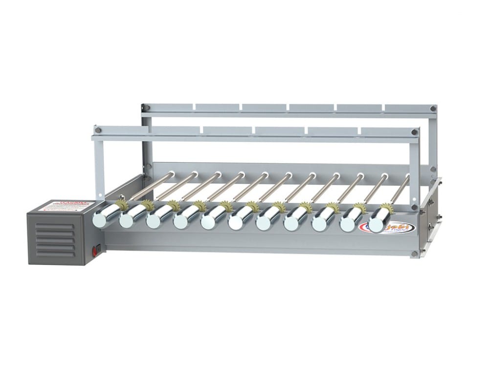 LINHA STANDARD – Corpo em chapa aço carbono com pintura époxi eletrostática cinza grafite com capa frontal dos espetos em aço inox.