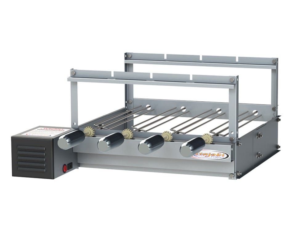 LINHA STANDARD – Corpo em chapa aço carbono com pintura époxi eletrostática cinza grafite com capa frontal dos espetos em aço inox.