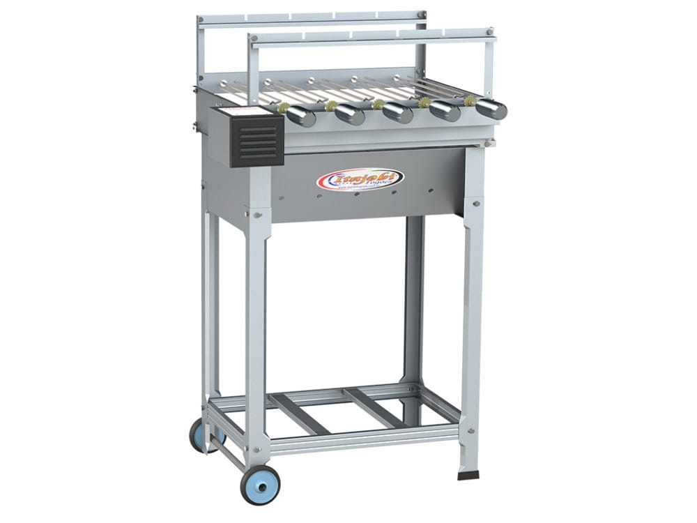 LINHA STANDARD – Corpo em chapa aço carbono com pintura époxi eletrostática cinza grafite com capa frontal dos espetos em aço inox.