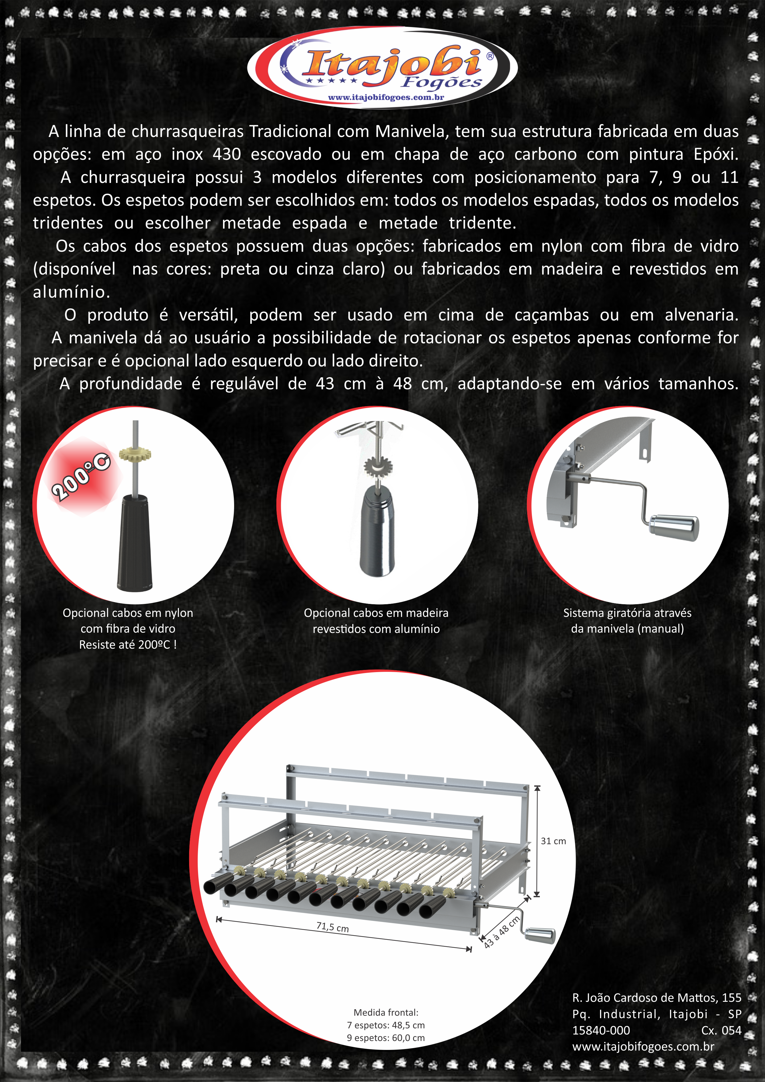 Itagrill Tradicional Manivela 9 espetos espadas Itajobi Fogões