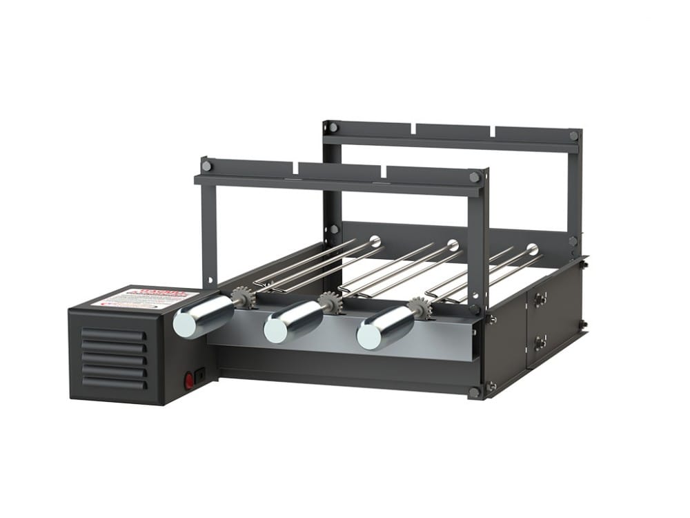 LINHA STANDARD – Corpo em chapa aço carbono com pintura époxi eletrostática cinza grafite com capa frontal dos espetos em aço inox.