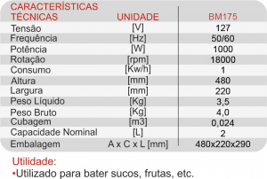 LIQUIDIFICADOR ALTA ROTAÇÃO 2 LITROS 1000W (220V) – BM 176 NR BERMAR