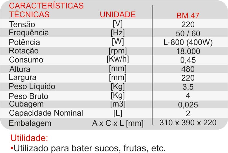 LIQUIDIFICADOR ALTA ROTAÇÃO 2 LITROS L800 (220V) – BM 47 BERMAR