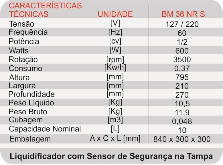 LIQUIDIFICADOR INDUSTRIAL LB 10 LITROS – BM 36 NR S – BIVOLT BERMAR