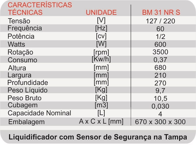 LIQUIDIFICADOR INDUSTRIAL LB 4 LITROS – BM 31 NR S – BIVOLT BERMAR