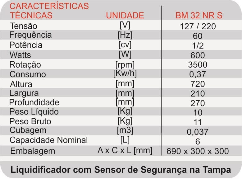 LIQUIDIFICADOR INDUSTRIAL LB 6 LITROS – BM 32 NR S – BIVOLT BERMAR