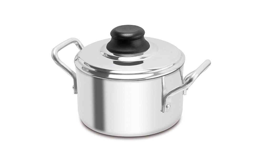 Descrição: Item 2 peças, caçarola e tampa em alumínio, com pomel da tampa em baquelite.