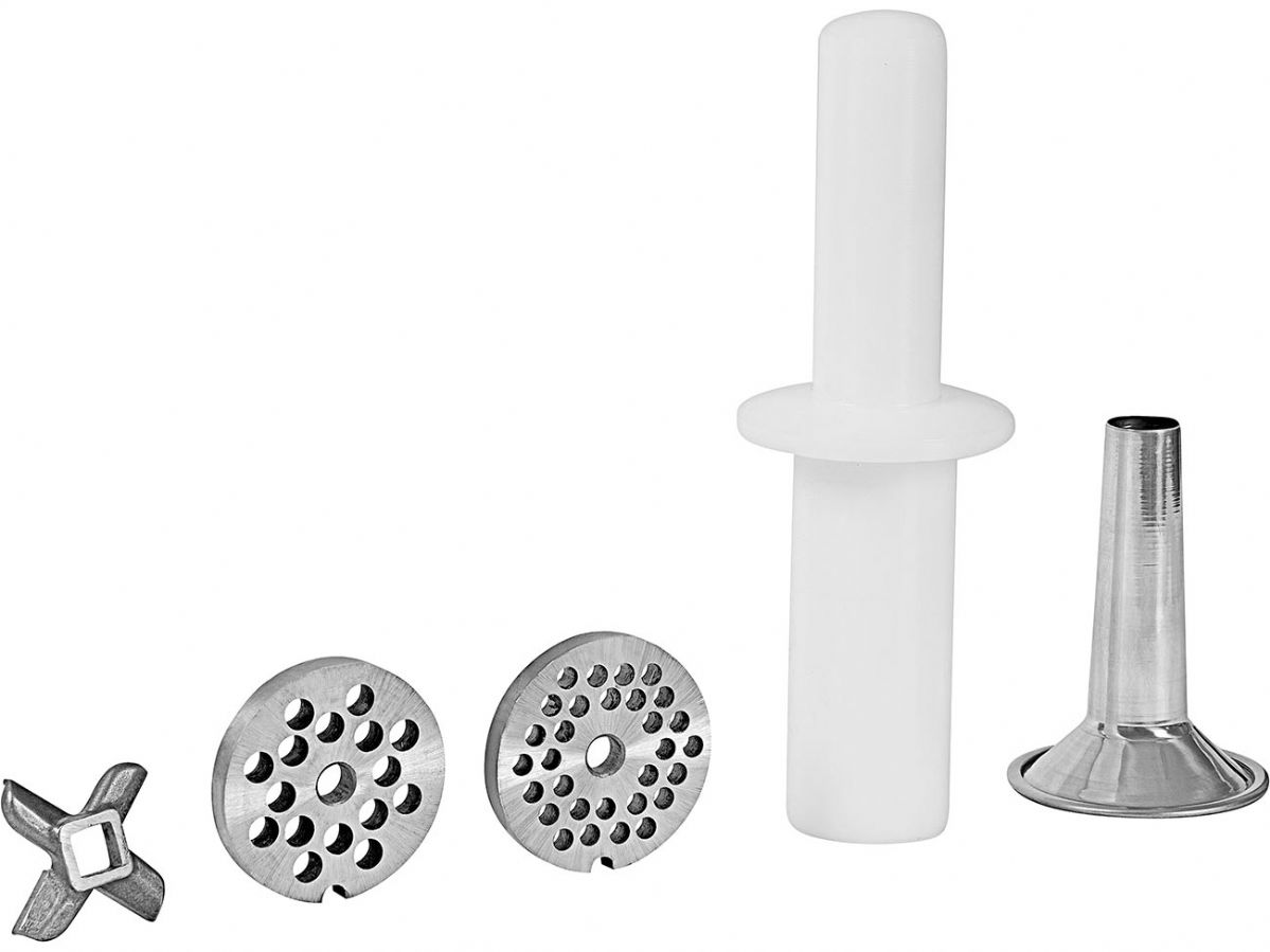 – Acompanha funil em alumínio para encher linguiça e discos de 6 e 8mm