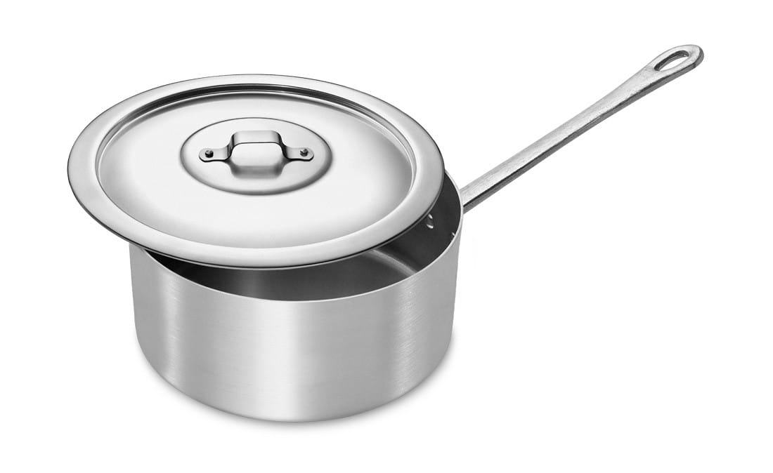 Descrição: Item 2 peças, caçarola e tampa com cabo, em alumínio.
