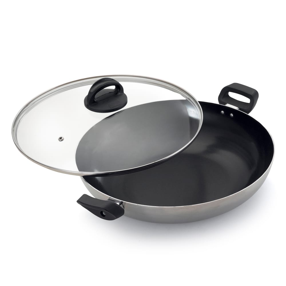 Panela Wok AA Interno e Tampa de Vidro Alumínio Nacional