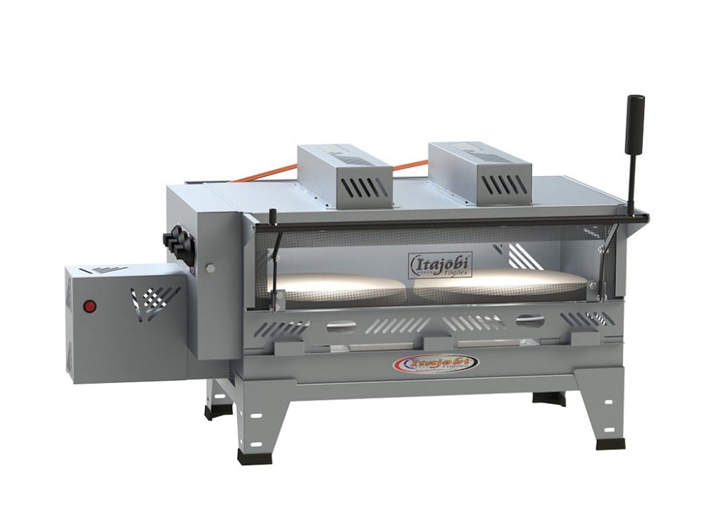 A linha Pizza Grill é um produto inovador destinado a assar pizzas com maior agilidade, sua estrutura é confeccionada em aço inox 430 para alta temperatura. O infravermelho superior é utilizado para gratinar as pizzas e o queimador inferior para aquecer a pedra refratária. A abertura do vidro é através de guilhotina e o peso para abertura possui opção de escolha do lado direito ou do lado esquerdo. A Pedra refratária pode ser giratória por motor ou por manivela ou pedra refratária fixa. O produto possui isolamento térmico na lateral de manuseio (onde há botões para controlar o infra vermelho e o queimador da pedra refratária) feito com lã de cerâmica. O produto apresenta versões para mesa ou com cavalete.