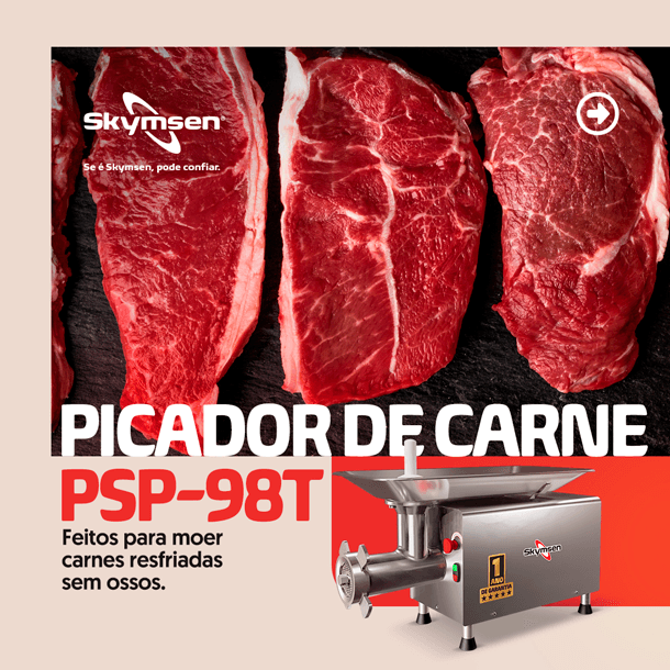 facilita a retirada das peças do equipamento para higienização. Além disso, os moedores de carnes da Skymsen contam