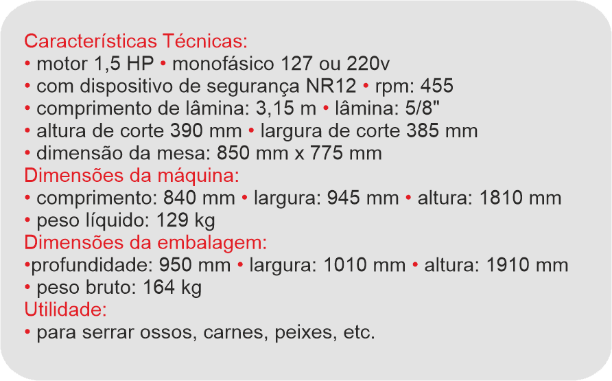 SERRA FITA DE COLUNA INOX LÂMINA 3,15M – MOTOR 1,5HP – BM67NR BERMAR