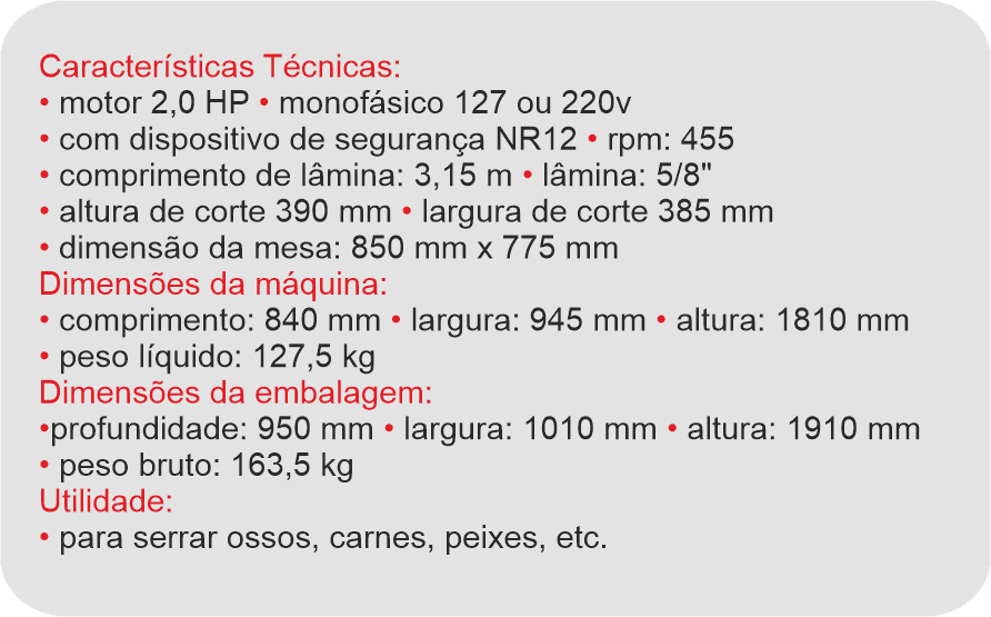 SERRA FITA DE COLUNA INOX LÂMINA 3,15M – MOTOR 2,0HP – BM68NR BERMAR