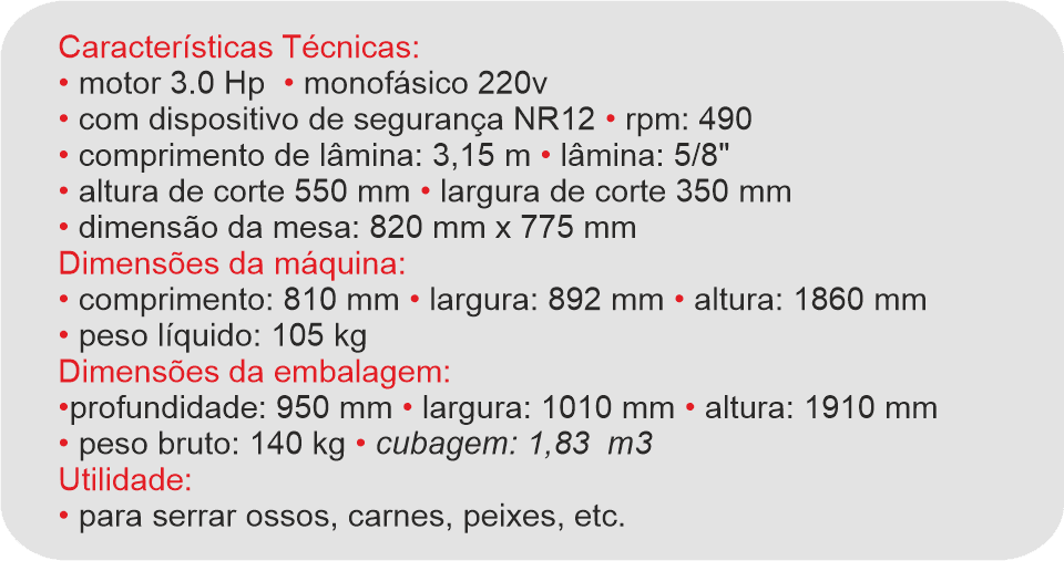 SERRA FITA DE COLUNA INOX LÂMINA 3,15M – MOTOR 3,0HP – BM167L BERMAR