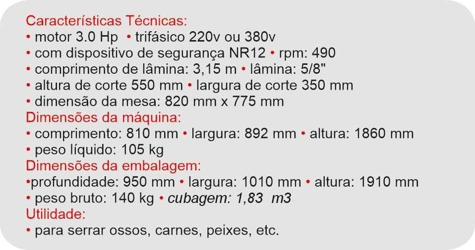 SERRA FITA DE COLUNA INOX LÂMINA 3,15M – MOTOR 3,0HP – BM173L BERMAR