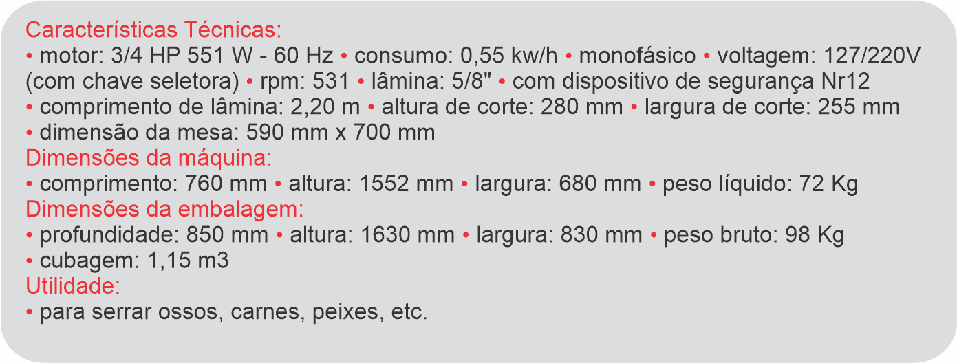 SERRA FITA DE COLUNA LÂMINA 2,20M BM21NR BERMAR