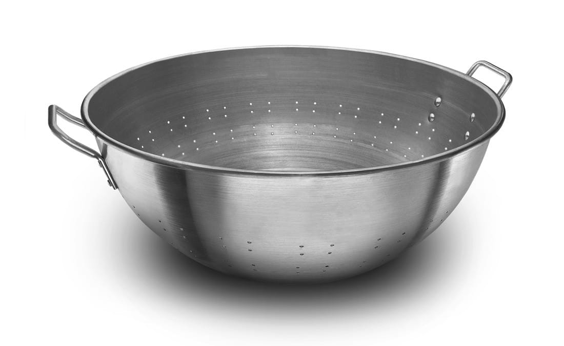 Descrição: Tacho com furos e 2 alças, em alumínio.