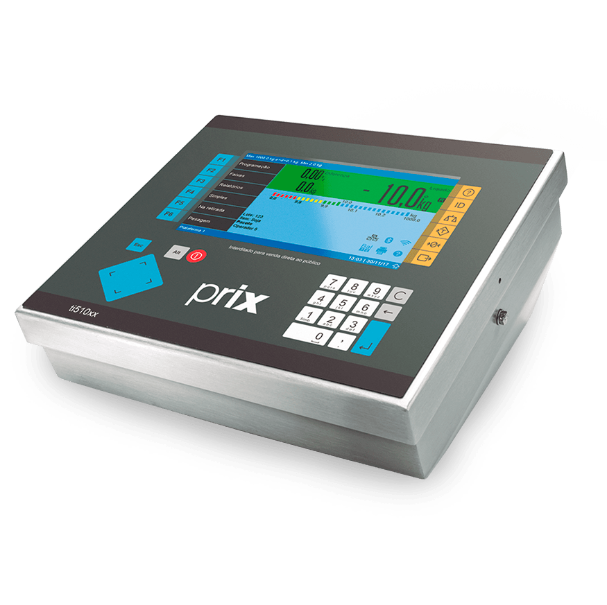 Permite interligação com impressoras, como a Prix 451 Industrial e a Zebra, possibilitando a impressão de etiquetas em diversos tamanhos, com dados de data, hora, sequencial de pesagem, tara, peso líquido e bruto.