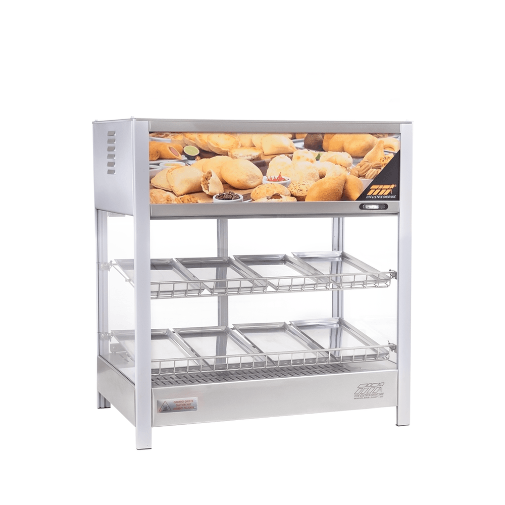 Estrutura fabricada em perfil de alumínio anodizado e aço inox; com todos os vidros temperados; bandejas em aço inox; grelha em aço carbono niquelado; termostato; termômetro analógico; iluminação LED; display com foto (exceto modelos SD – sem display); recipiente tipo gaveta para adicionar água e gerar umidade; resistência elétrica em aço inox 304 tubular; fiação elétrica com revestimento em silicone resistente a 300°C.