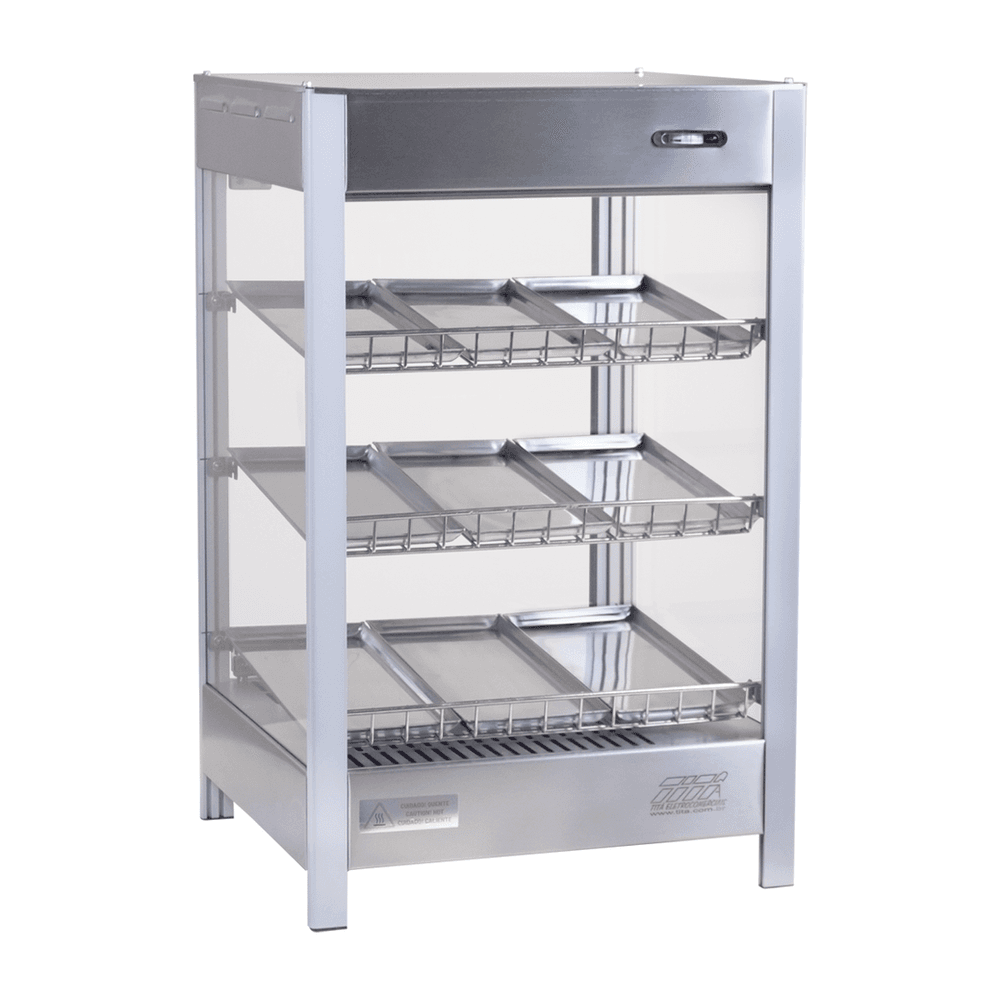 Estrutura fabricada em perfil de alumínio anodizado e aço inox; com todos os vidros temperados; bandejas em aço inox; grelha em aço carbono niquelado; termostato; termômetro analógico; iluminação LED; display com foto (exceto modelos SD – sem display); recipiente tipo gaveta para adicionar água e gerar umidade; resistência elétrica em aço inox 304 tubular; fiação elétrica com revestimento em silicone resistente a 300°C.