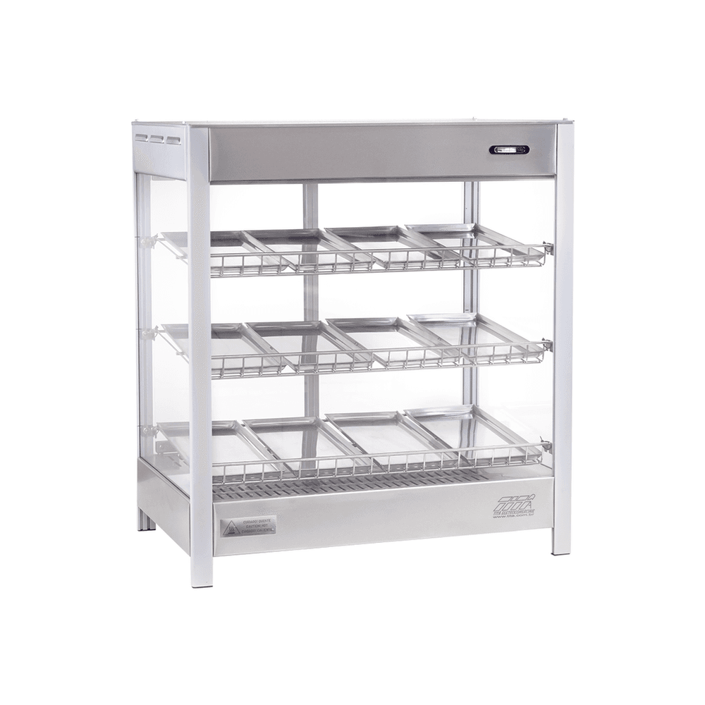 Estrutura fabricada em perfil de alumínio anodizado e aço inox; com todos os vidros temperados; bandejas em aço inox; grelha em aço carbono niquelado; termostato; termômetro analógico; iluminação LED; display com foto (exceto modelos SD – sem display); recipiente tipo gaveta para adicionar água e gerar umidade; resistência elétrica em aço inox 304 tubular; fiação elétrica com revestimento em silicone resistente a 300°C.